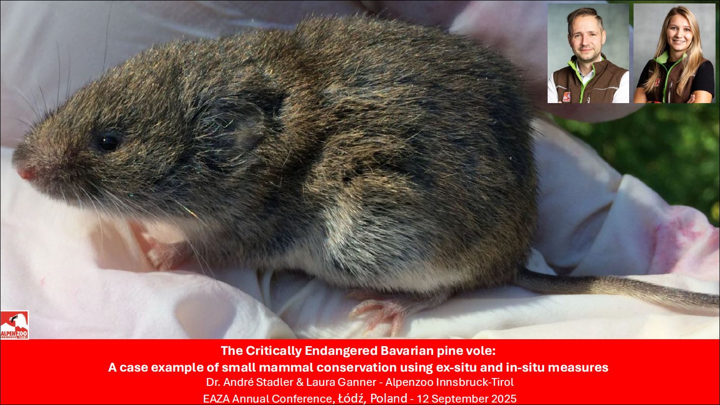 Dr. André Stadler & Laura Ganner (Alpenzoo Innsbruck) The Critically Endangered Bavarian pine vole: A case example of small mammal conservation using ex-situ and in-situ measures
