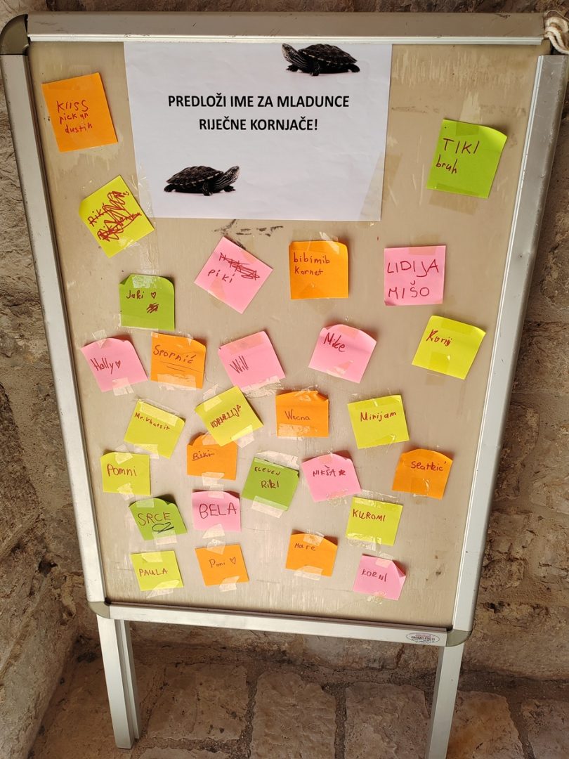 Mališani su se sjajno zabavili uz Maru, maskotu projekta, te naučili što činiti kako bi se za budućnost očuvalo stanište riječne kornjače u njihovoj županiji. Ponosni su što su mogli predložiti i imena mladuncima kornjača koje smo uzgojili.