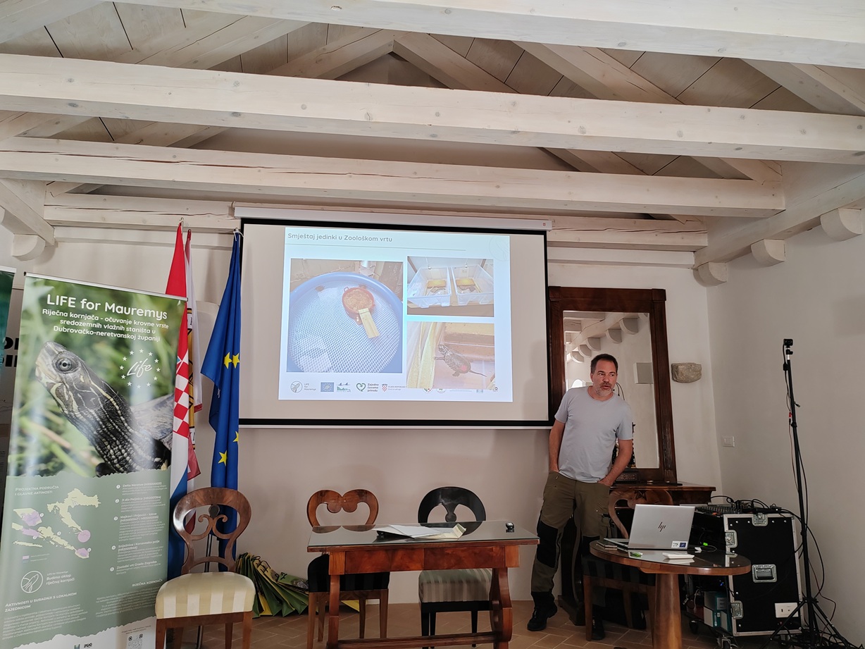 Riječ je o edukativno-informativnoj manifestaciji posvećenoj slatkovodnim ekosustavima s naglaskom na očuvanje riječne kornjače, održivo upravljanje te zajedničko djelovanje znanosti, struke i lokalne zajednice koja se organizira u sklopu projekta LIFE for Mauremys – Riječna kornjača – očuvanje krovne vrste sredozemnih vlažnih staništa u Dubrovačko-neretvanskoj županiji. Dvoje naših kolega održalo je zanimljiva predavanja iz različitih područja projekta. Zoologinja Ivana Kovarik Antonović govorila je o volonterskom programu projekta, a ravnatelj Ivan Cizelj o uzgoju riječne kornjače u Zoološkom vrtu. Naime, Zoološki vrt Grada Zagreba do jeseni treba uzgojiti 40 riječnih kornjača. Uzgoj gmazova izuzetno je zahtjevan jer je potrebno zadovoljiti mnogobrojne uvjete, no u Zoološkom vrtu već je uzgojeno više od 30 mladunaca riječnih kornjača. Njima će se ojačati populacija vrste u divljini. Primjer je to kako suvremeni zoološki vrtovi mogu doprinijeti očuvanju ugrožene vrste životinja u prirodi.