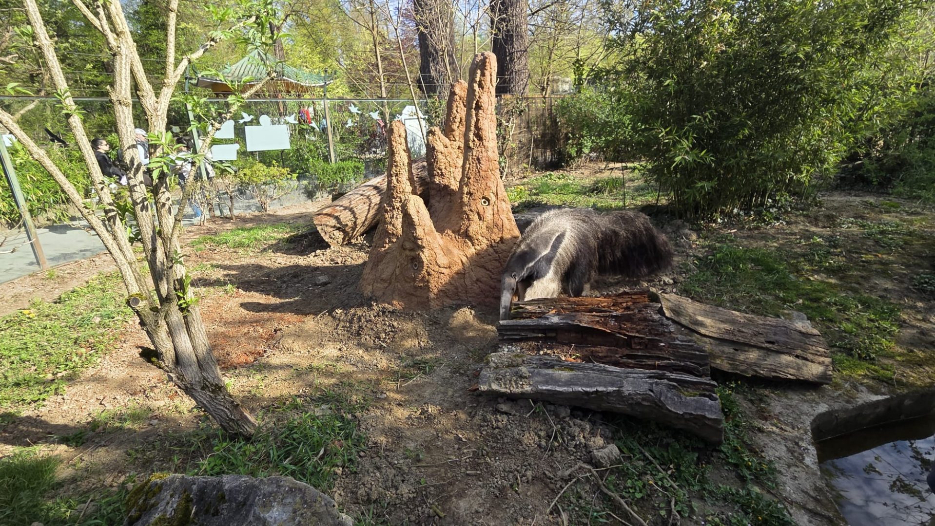 Umjetni termitnjak ima izgled stijene i lijepo se uklopio u okoliš. U termitnjaku su cijevi u koje se stavlja hrana.